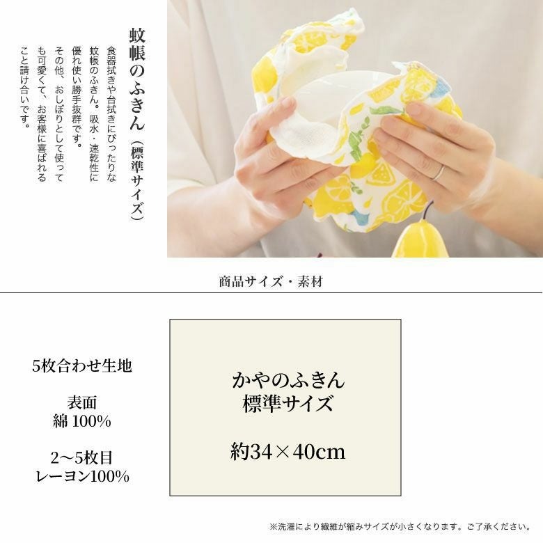 奈良の蚊帳づくりの伝統を活かした蚊帳生地を使用したふきんです。